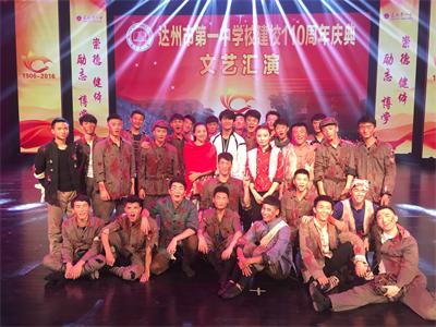 达州市第一中学校始建于1906年,是一所具有悠久办学历史和光荣革命传统的百年名校,先后培养过陈伯均、张爱萍、魏传统、杨超、李中权、刘兴权、陈挽澜等老一辈无产阶级革命家。此次,学院选送以巴渠红色文化为主题进行创编的《魂铸巴山》参加该校校庆演出,不仅巩固和加深了院校之间的深厚情谊,而且进一步拓宽了学院服务地方经济文化建设的平台和渠道。