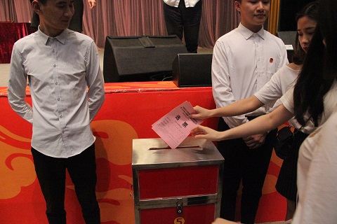 大会在庄严的国歌声中拉开了序幕。大会第一项,由校团委于贵书记发言,于书记对大会的召开致以热烈的祝贺,指出共青团的工作在青年工作中的重要地位,并对音演团总支过去一年的工作予以肯定,还对音演学子提出三点希望:一是希望全体青年学生坚定理想信念,树立正确的三观;二是希望全校各级团学组织不断增强自身的吸引力、凝聚力和战斗力;三是希望各位领导和老师一如既往地支持共青团的工作。大会第二项,由院团总支和学生会代表作工作报告,团总支常务副书记罗文玉、学生会主席肖智元分别作团学工作报告。大会第三项,为本学年度考核合格的学生干部颁发聘书和优秀学生干部颁发十佳学生干部荣誉证书。大会第四项,表决通过了团学代会选举办法等决议,选举了共青团音乐与演艺学院第八次委员会委员8人和第八次学生委员会委员10人。大会第五项,冉明副书记讲话,他在肯定上一届团总支学生会工作的同时也对新一届委员的工作提出了要求。大会奋进的团歌声中顺利闭幕。
