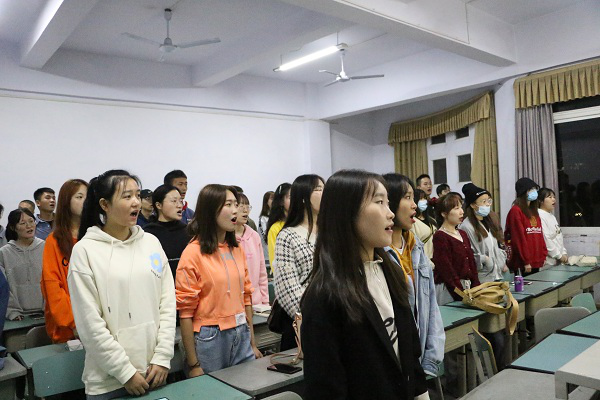 会上,各班团组织生活在大家齐唱团歌的节奏声中拉开序幕。随后,带班辅导员从加深“四城同创”知识掌握,增强“文明校园,我参与我行动”宣传成效、开展“当好东道主,办好大艺节”宣传教育等三个方面进行了工作安排。