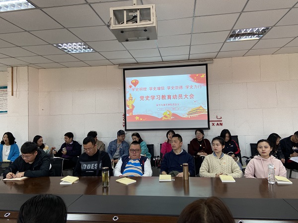 3月24日,学院党总支在音演大楼4039会议室召开党史学习教育动员大会。会议由党总支书记阮碧辉主持。副院长(主持工作)何凤先、副院长冉明出席会议并讲话。