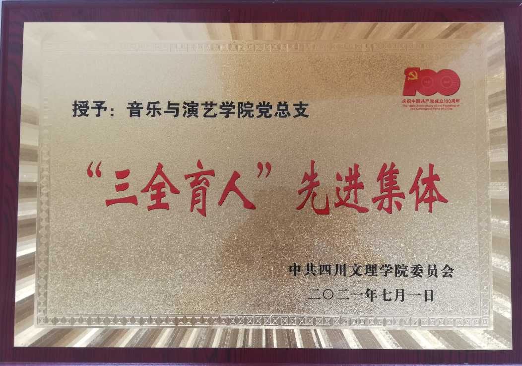 7月1日,学校庆祝中国共产党成立100周年暨表彰大会隆重举行。音乐与演艺学院党总支被表彰为“三全育人”先进集体。
