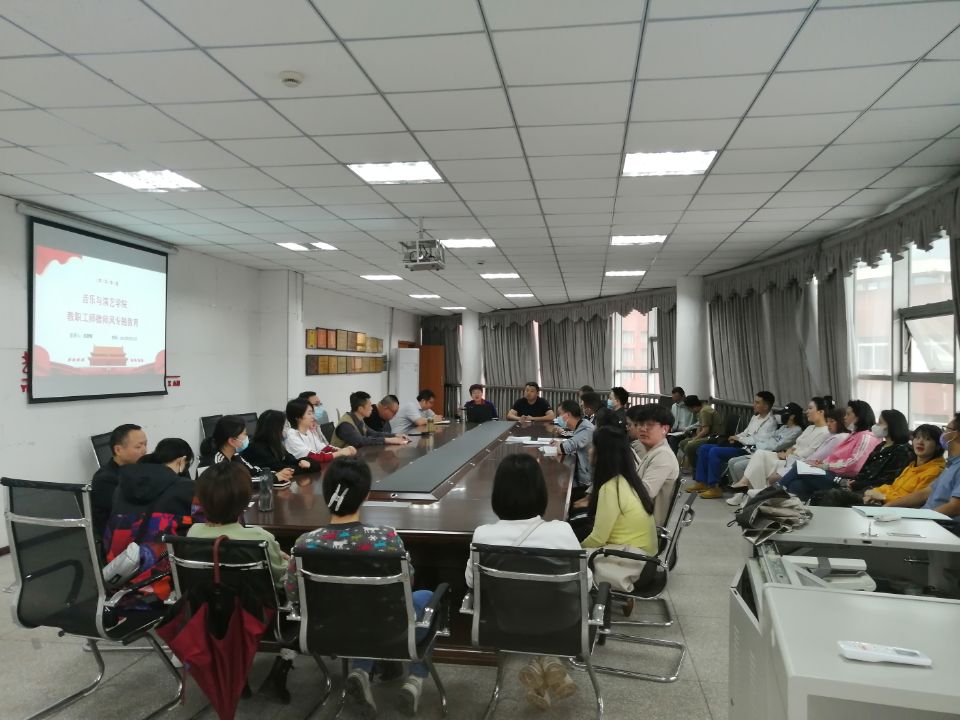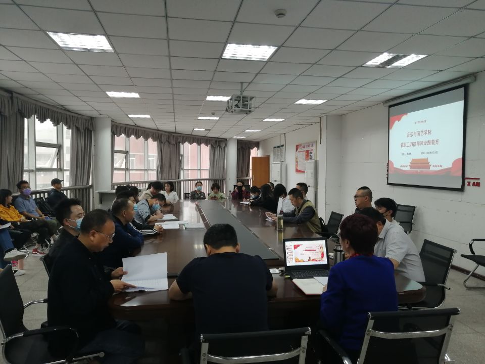 2022年5月18日下午14:30,音乐与演艺学院在音演大楼四楼会议室召开师德师风专题教育会议,会议由党总支书记阮碧辉主持。