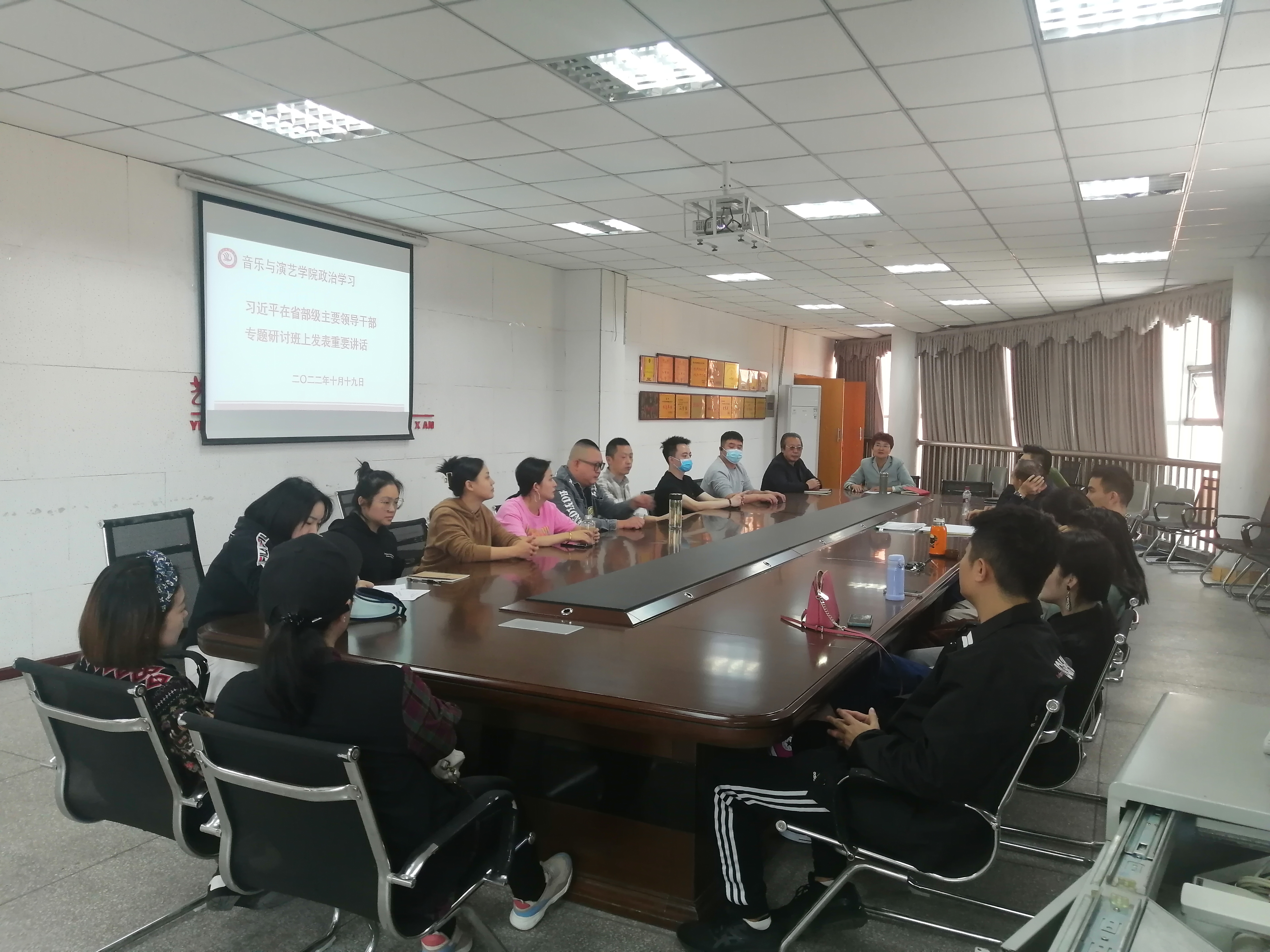 2022年10月19日下午,音乐与演艺学院在音演大楼四楼会议室召开全体教职工政治学习,会议由党总支书记阮碧辉主持。