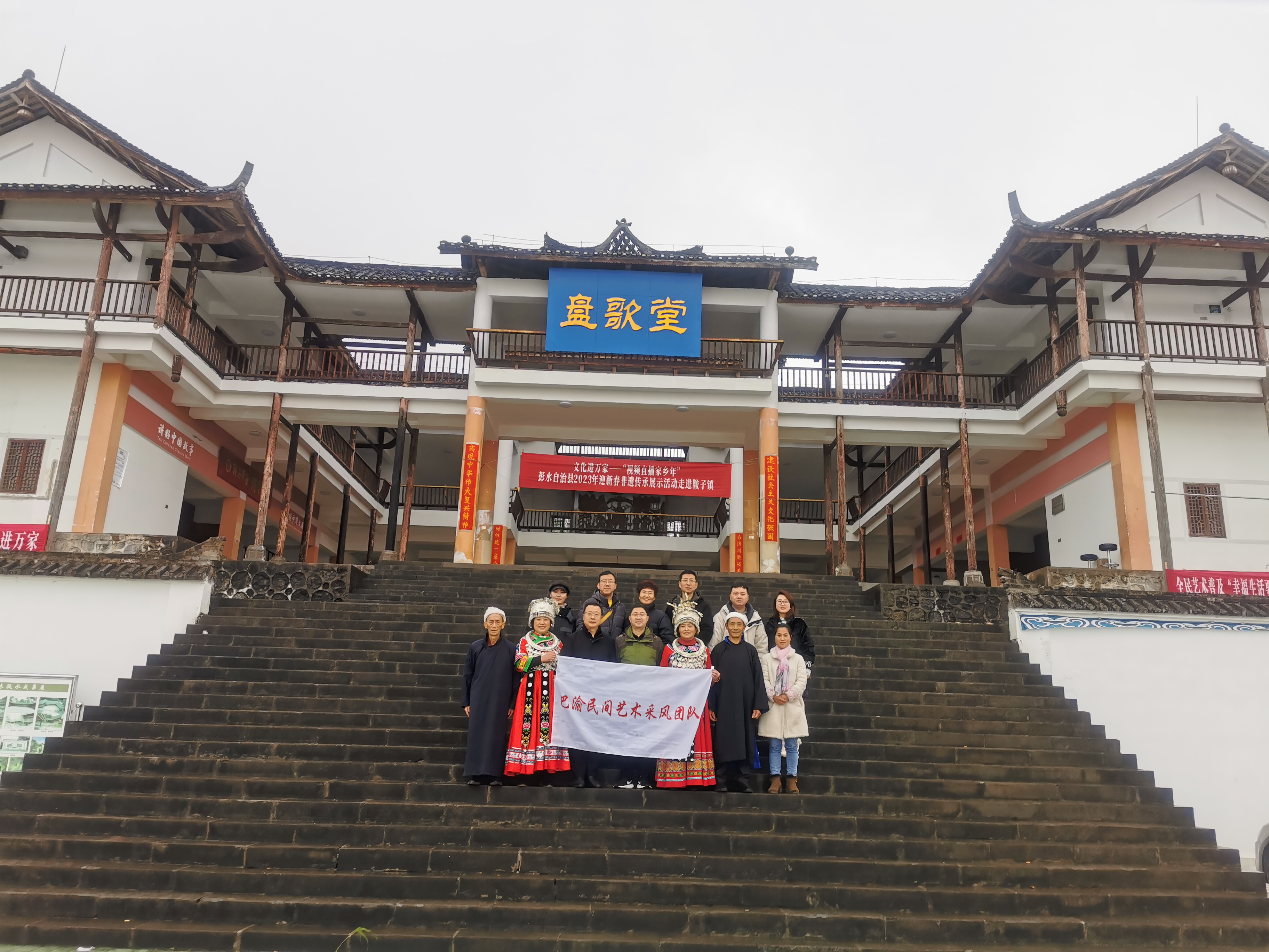 1月14日,廖明主席带领同行教师及会员前往彭水县鞍子镇的盘歌堂欣赏当地国家级传承人的精彩表演。