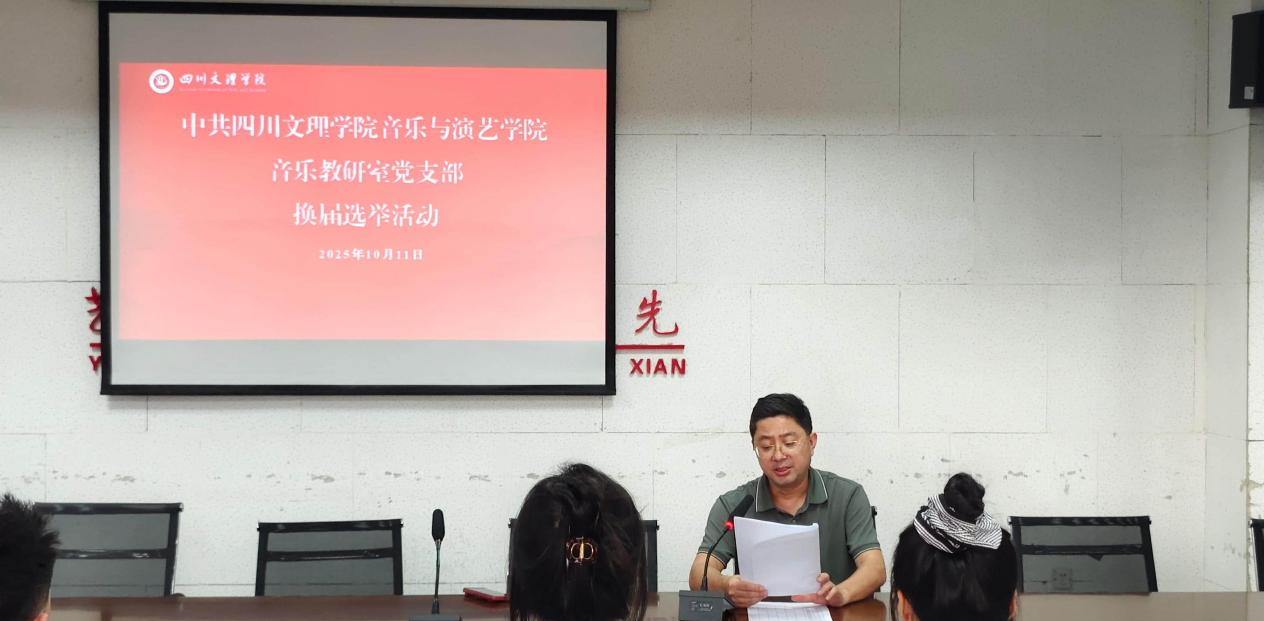 2025年10月11日,音乐与演艺学院音乐教研室党支部召开2025年换届选举党员推荐大会。党支部书记潘广宇主持会议,党支部委员全体成员出席会议并发言,音乐教研室全体党员参会。