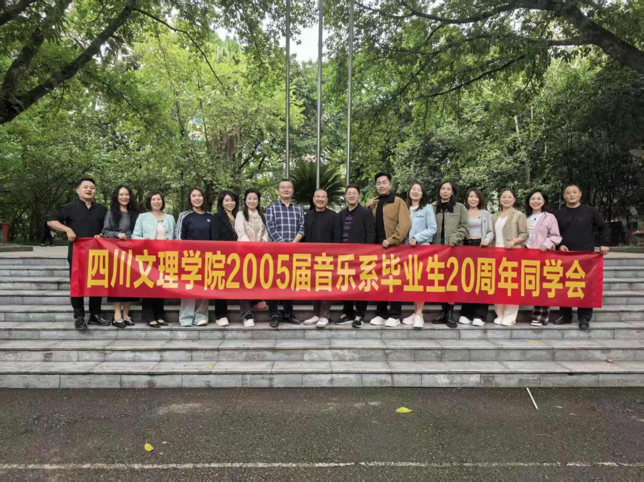 2025年10月18日至19日,四川文理学院音乐与演艺学院2005届校友从全国各地重返母校,举行毕业20周年纪念活动。学校校友工作办公室与学院对此次活动高度重视,音乐与演艺学院副院长冉明、副院长潘广宇及原班主任潘维老师、刘永建老师共同参与了相关活动。