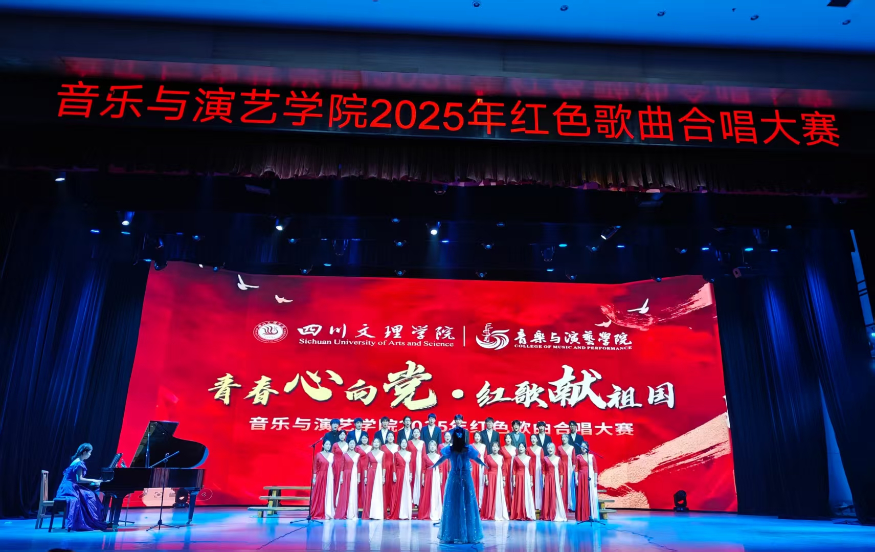 12月4日,由音乐与演艺学院主办,音乐教研室承办的“2025年度音乐学专业红色歌曲合唱比赛”在学院音乐大厅隆重举行并圆满落幕。本次比赛以“青春心向党,红歌献祖国”为主题,旨在全面展示音乐专业学生的合唱艺术水准、舞台实践能力与团队协作精神,是检视教学成果、活跃校园艺术文化氛围的重要平台。