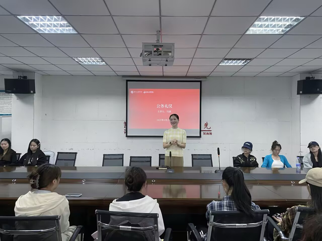 2025年9月26日,音乐与演艺学院于音演楼四楼会议室举办一站式学生社区“公务礼仪”主题授课活动。学院党委副书记冯蜜担任主讲人,为同学们带来一场兼具传统文化底蕴与现实指导意义的礼仪培训。