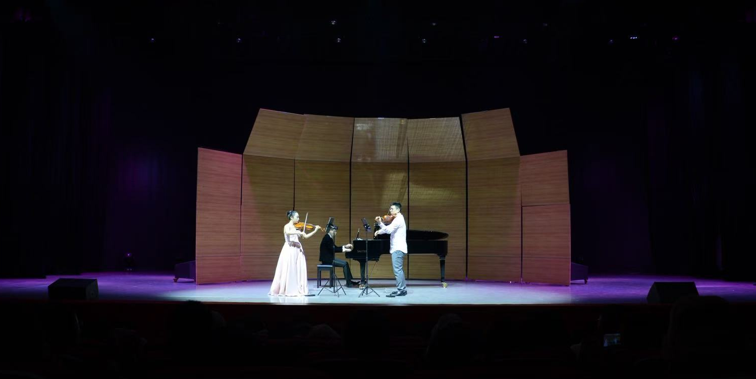 本场音乐会演奏形式丰富,涵盖小提琴独奏、钢琴小提琴二重奏,以及钢琴三重奏的室内乐形式;所选曲目覆盖东西方音乐作品,跨越浪漫主义至二十世纪。音乐会以德沃夏克旋律清新、气质淡雅的《四首浪漫小品》开篇,继而演出伊萨伊《无伴奏小提琴奏鸣曲》第二首,以高密度技巧与强烈戏剧张力凸显独奏魅力。柴可夫斯基《纪念一个亲爱的地方》用歌唱性线条呈现深情回忆,《花儿为什么这样红》则以更具华彩的写法展现新疆民歌的明亮色彩。