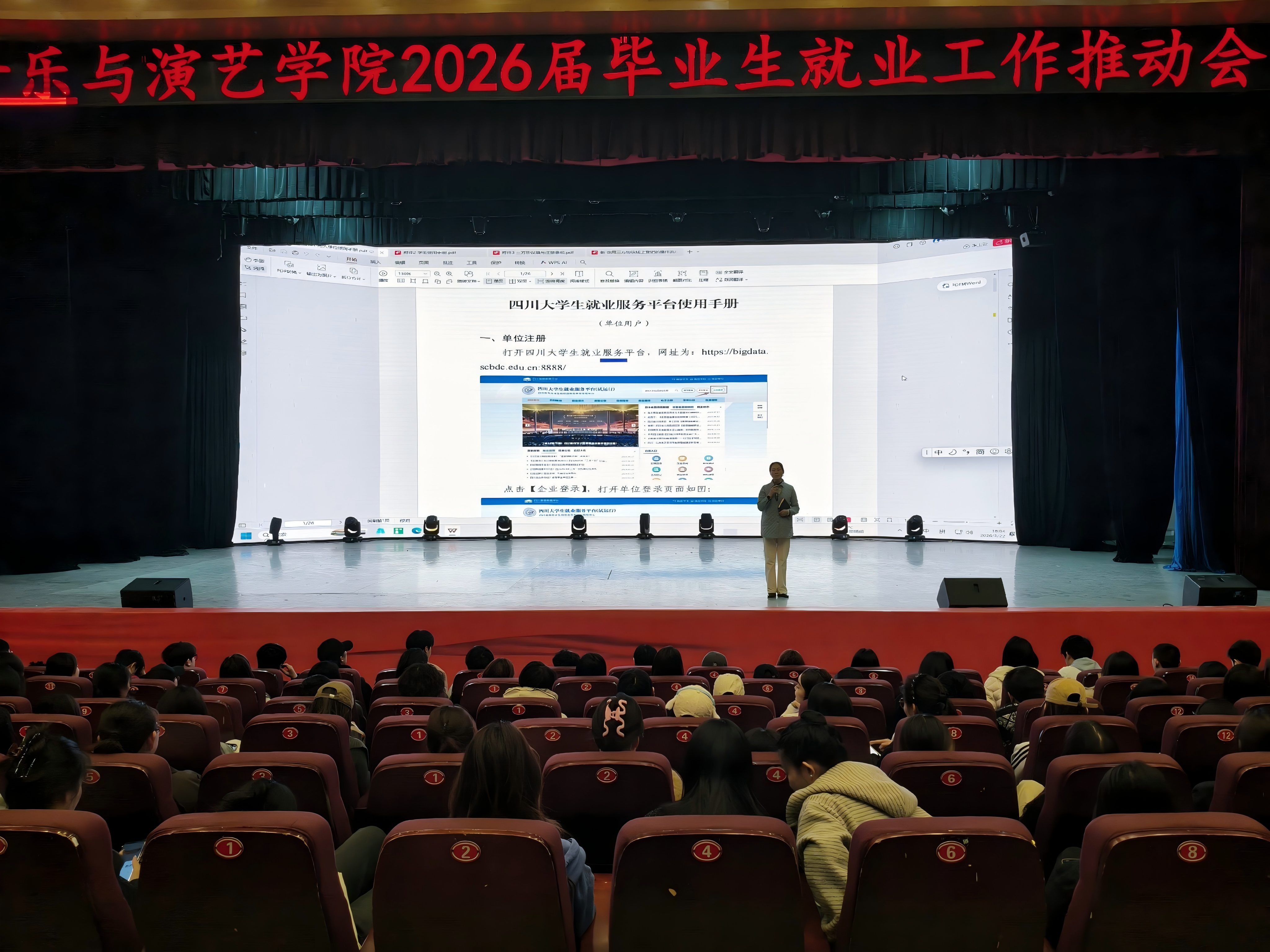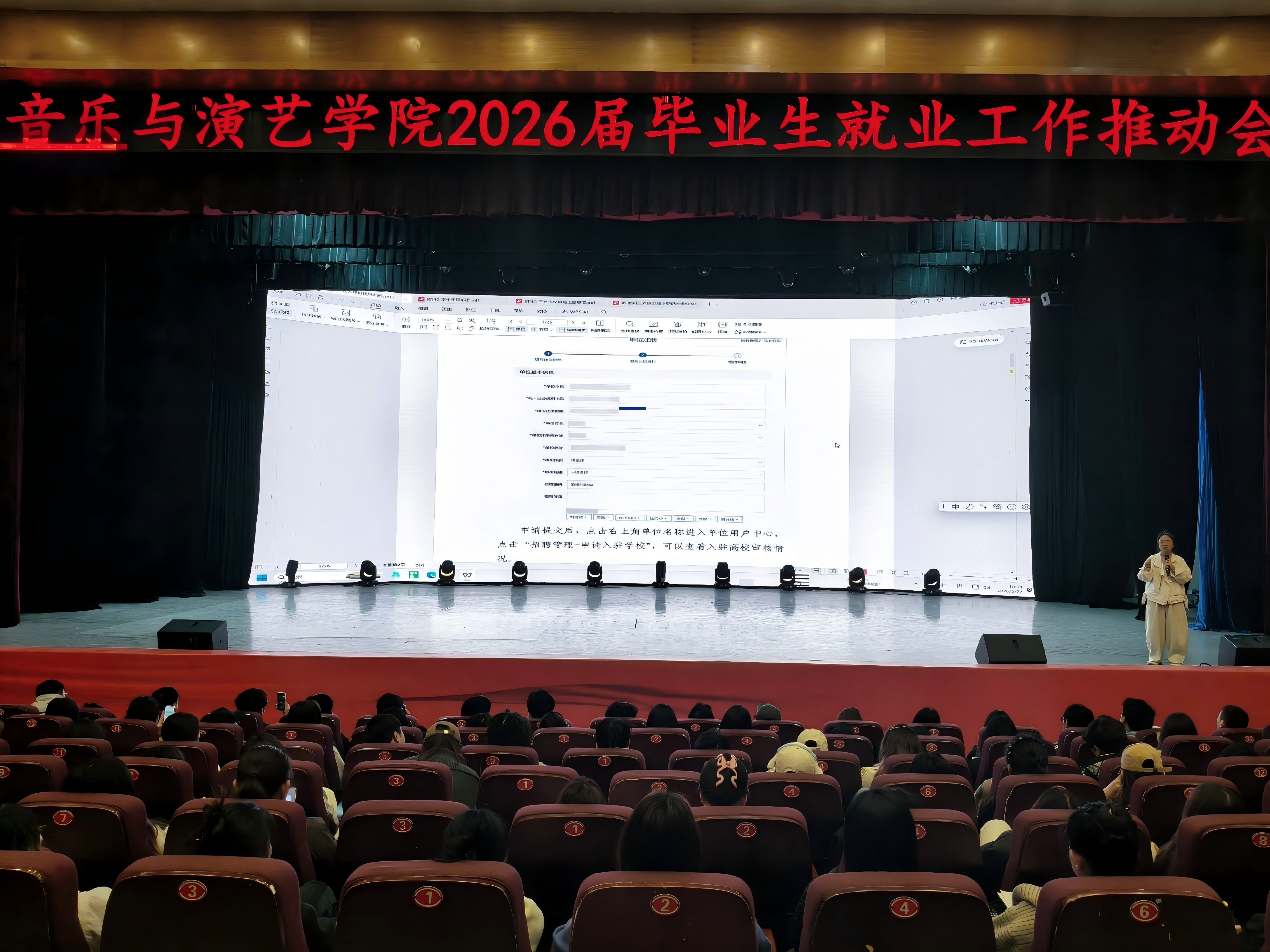 为进一步提升学生综合素质,强化思想引领与日常教育,营造安全文明、积极向上的校园氛围,2026年3月22日,音乐与演艺学院非毕业年级在音演大楼各教室召开了3月第二次主题班会, 毕业年级在音乐厅召开了2026届毕业生就业工作推进会。