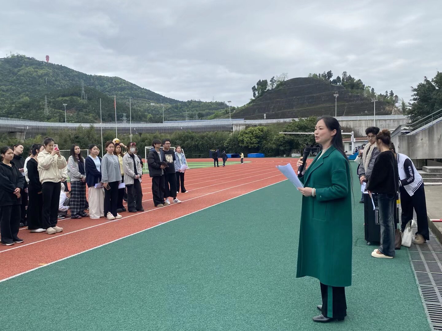 为丰富校园文化生活,增强同学们的体质,培养团队精神和竞争意识,音乐与演艺学院第十六届春季田径运动会于2026年4月2日在四川文理学院莲湖校区田径场举办。学院党委副书记冯蜜,辅导员吕晓燕、黎珂君、李欣宸和唐清雄出席开幕式,全体学团干部及参赛运动同学参与到本次活动。